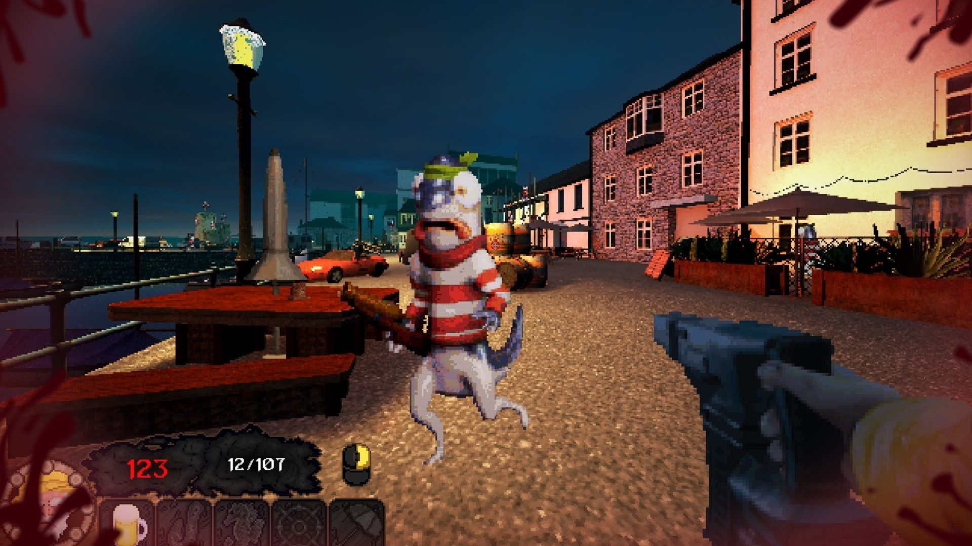 Fight your way through waves of local seafood and paint the town with red. Armed with an arsenal of quirky weapons, bring the pain with everything from cannonballs to explosives to a well-placed battered cod.