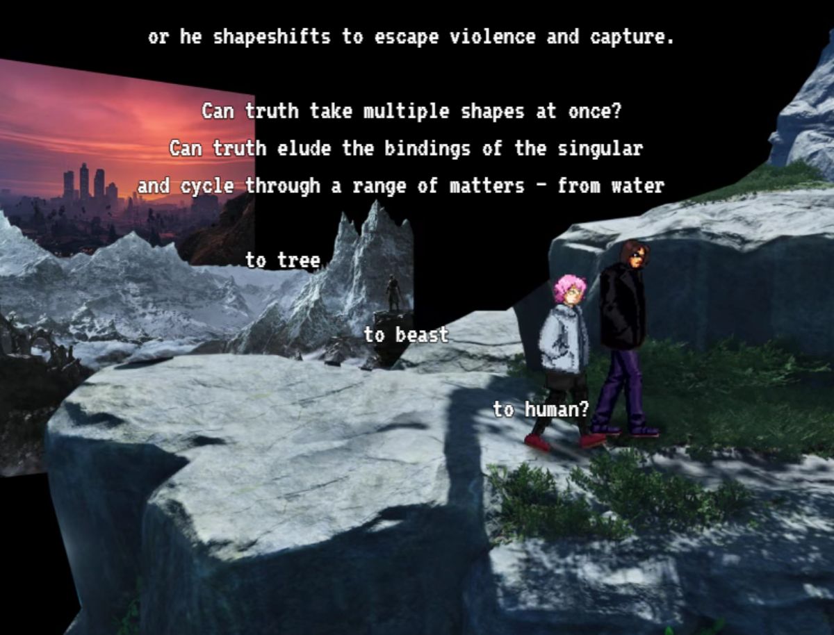 Petra Szemán is a moving image artist working with animation and game-like landscapes. Their practice focuses on the murky borderlands along the arbitrary line separating real and fictional, and the kind of lives and experiences that are possible there. Using a virtual version of themself as a protagonist journeying through animatic realms, they explore liminal spaces and threshold situations, looking to dissect the ways our memories and selves are constructed within a landscape oversaturated with fiction (both on- and off-screen). Turning away from thinking of the cyberspace as a radically ’other’ realm, Petra hopes to walk the line situated between dystopian and utopian frameworks, eyes set on new queer horizons.