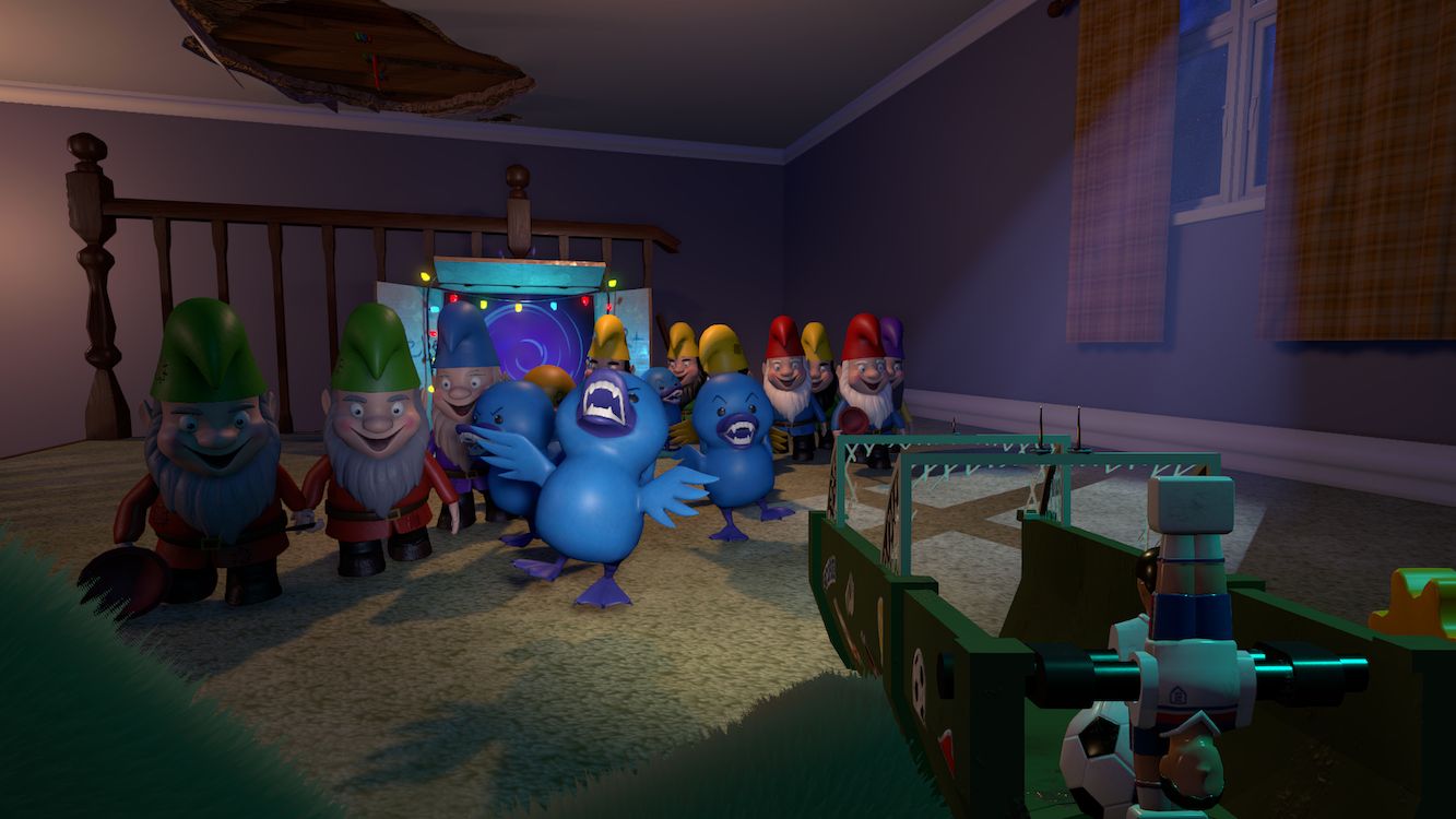 2 Foot Hero is an action-packed virtual reality (VR) first-person shooter (FPS) with tower defence elements. Set in a dream world, players take on the role of a brave teddy bear tasked with defending their owner's bedroom door from waves of enemies. Players can engage in single-player or online co-op multiplayer modes, building defences and wielding dual weapons as they protect Ellie’s bedroom from invading nightmares.
